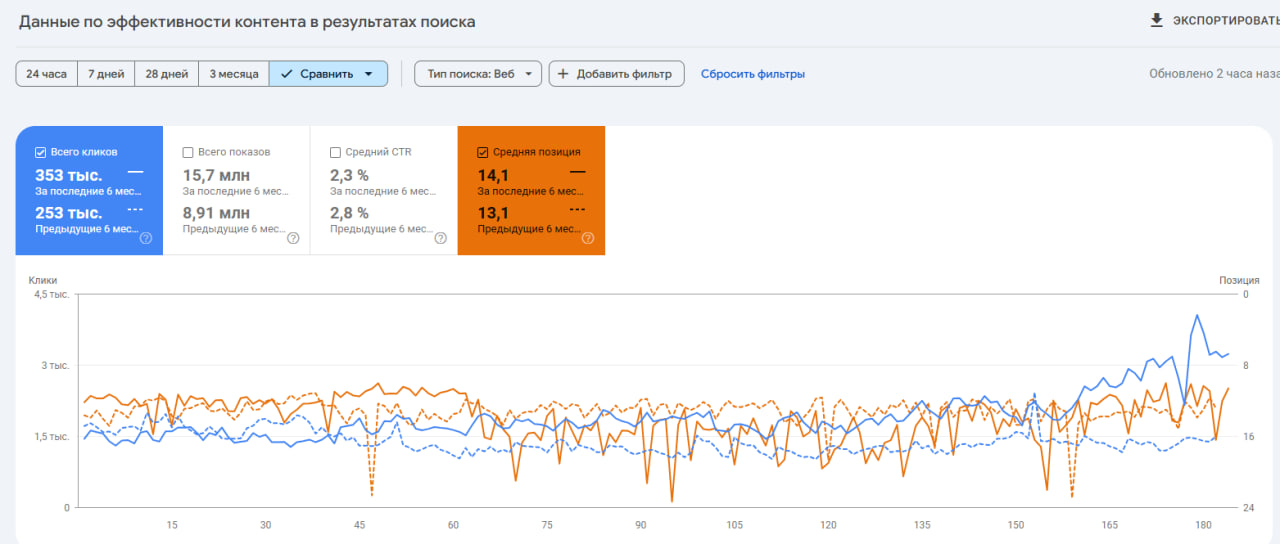 За 6 місяців трафік збільшився з 253 000 до 353 000 за 6 місяців. 79 000 за місяць, починали з 47 000 за місяць