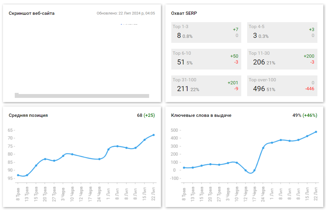 Відповідно створена база за рахунок якої можна далі розвивати проєкт отримуючи все більше запитів в ТОП і трафіку.